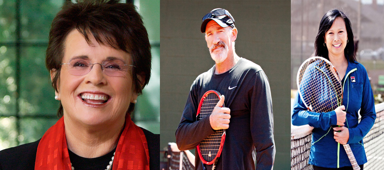 Supporters Billie Jean King, Brad Gilbert and Peanut Louie Harper